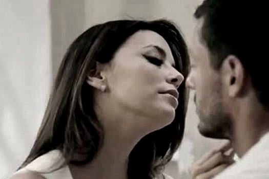 Eva Longoria, îmbrăcată într-o rochie albă cu un decolteu generos, este o apariţie sexy, ea flirtând atât cu partenerul ei, cât şi cu aparatul de filmat.