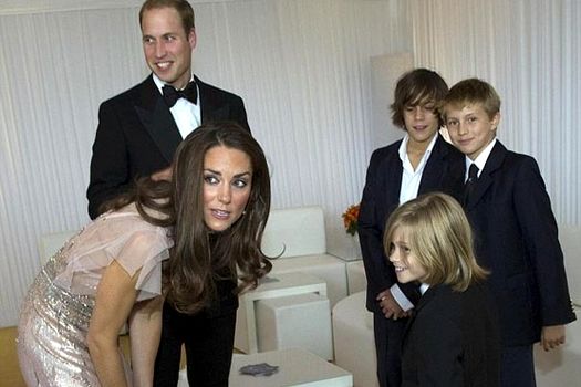 Întâmpinaţi de Arpad Busson, tinerii căsătoriţi s-au alăturat grupului de celebrităţi, printre care se aflau artiştii Tracey Emin şi Anish Kapoor şi actorul Kevin Spacey. Invitaţii au plătit fiecare 10.000 de lire sterline (16.000 de dolari) pentru a asista la acest banchet din centrul Londrei.