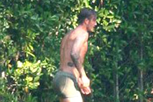 Vizibil ruşinat de situaţie, Beckham a încercat să se ascundă, însă tot ce a putut să facă a fost să se deplaseze cu spatele spre maşina sa, turiştii putându-i admira astfel forma fizică de invidiat.