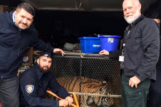 Poliţia s-a deplasat la faţa locului. Potrivit autorităţilor, uşa de la garajul în care se afla cuşca cu femela de tigru era ţinută închisă de un colier de plastic şi o şurubelniţă.