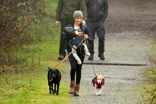 Pe de altă parte, ducesa Meghan a fost fotografiată, luni, plimbându-se cu Archie şi cei doi câini ai săi printr-o pădure. Fosta actriţă americană, care îl căra pe bebeluşul în vârstă de opt luni într-un marsupiu, zâmbea larg şi era însoţită de două gărzi de corp, în timp ce se plimba prin Horth Hill, un parc de lângă opulenta reşedinţă, în valoare de 14 milioane de dolari, pe care a închiriat-o pe insula Vancouver.