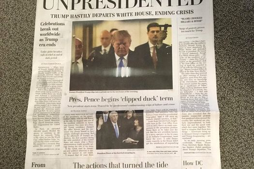Erik Wemple, reporter de media la Washington Post, a primit şi el unul dintre falsuri şi a publicat câteva imagini cu paginile ziarului. Un articol relata ştirea că vice preşedintele Mike Pence preia preşedinţia, în timp ce o altă ştire descria felul cum toate naţiunile sărbătoresc demisia lui Trump.