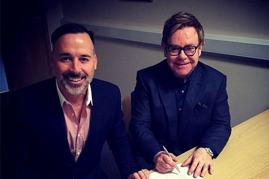 În fotografie, Elton John, care a anunţat că va „împărtăşi momente speciale din timpul căsătoriei” pe reţeaua socială, este aşezat lâgă un birou, alături de partenerul său, cu un stilou în mână şi un document în faţă. Cântăreţul are o verighetă la mâna stângă.