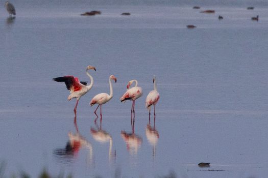 „Se hrăneşte în special cu nevertebrate de toate genurile pe care le filtrează cu ciocul din mâlul de pe fundul lacurilor. Culoarea roz o capătă datorită cantităţii mari de carotenoizi pe care o obţine din consumul crustaceilor capturaţi pe fundul lacurilor cu apă salmastră. Lungimea corpului este de 120-145 cm, iar anvergura aripilor este de 140-165 cm, cu o masă corporală de 2,1-4,1 kg”, potrivit documentului citat.