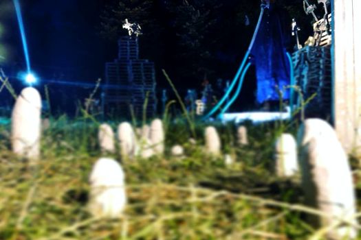 ”Organizatorii festivalului au rezonat foarte bine cu povestea noastră, cu entitatea noastră de la Baraka. A fost simulat contextul de cimitir, au fost blocuri de paleţi, era un fel de referinţă la oraşul Alb, din Cuba, este un oraş creat sub formă de cimitir, dar la nivel de blocuri, mormintele sunt supraetajate, nu este un cimitir normal, monoton, orizontal. Noi am fost inspiraţi şi am vrut să facem o copie după acest cimitir, în contextul artei contemporane. Am creat paleţii care erau blocuri cu cruci de cimitir, în centru era un personaj făcut de noi şi în faţa lui era o platformă cu dildouri, plantate în pământ ca nişte ciupercuţe”, a mai declarat Mihai Toth.