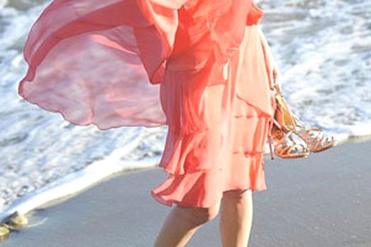 Şedinţa foto, care a inclus ţinute de seară, bijuterii şi încălţăminte, a avut loc pe plaja din Malibu, California.