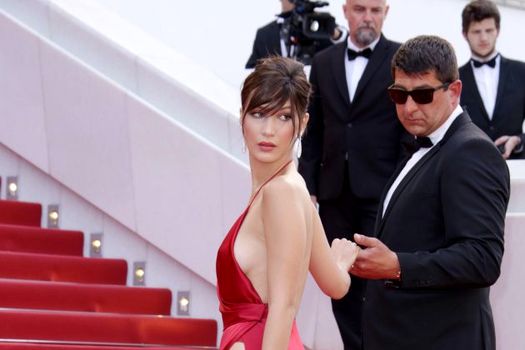 Simliar cu ţinuta sa de la ediţia din 2016 a Festivalului, în acest an Bella Hadid a purtat o rochie extrem de senzuală care i-a pus în evidenţă silueta şi picioarele.