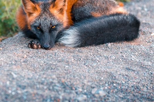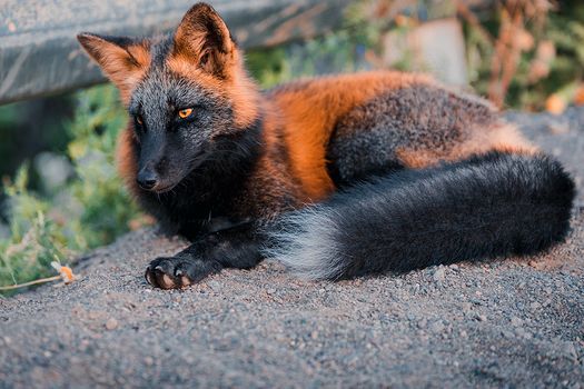 Exemplarul surprins este cunoscut sub numele de vulpea focului. Coloritul să neagru c portocaliu o face să iasă în evidenţă printre celelalte specii.