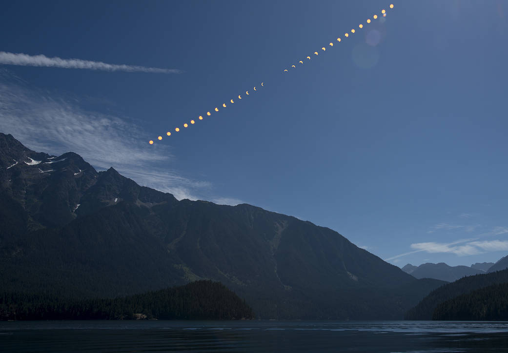 Eclipsa totală de soare a trecut de-a lungul unei porţiuni continentale înguste a Statelor Unite ale Americii de la Lincoln Beach, Oregon la Charleston, Carolina de Sud.