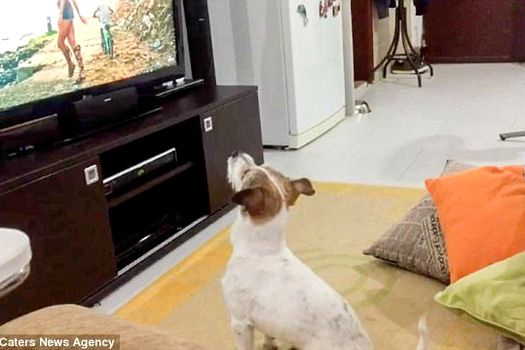 Într-o serie de imagini, patrupedul este surprins dând din coadă şi privind transfigurat videoclipul melodiei, ce rulează pe televizorul săpânului său, Emre.
