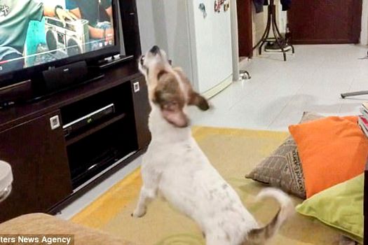 Căţelul dă vesel din coadă, privind transfigurat la televizorul pe care rulează melodia ‘Despacito ft. Daddy Yankee’.