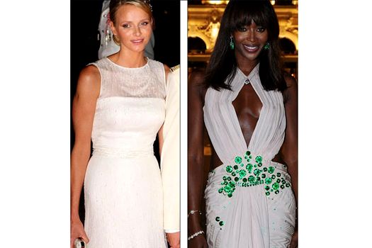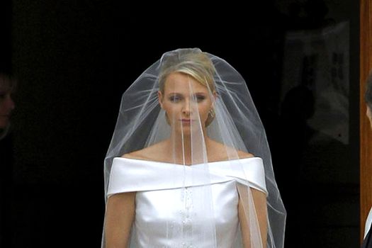 Ţinuta Givenchy a reuşit să atragă atenţia de la mireasa Charlene de Monaco, care a purtat o rochie Armani albă, de muselină de mătase, cu un corset simplu şi cu o fustă cu patru straturi ce picau în valuri, pe care au fost de asemenea cusute cristale fine.