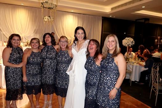 Ţinuta preferată a fost o rochie din dantelă albastră, în valoare de 159 de dolari. Din fericire, protagonistele au decis să se amuze copios. Deşi au fost confundate cu domnişoarele de onoare, cele şase femei au reuşit să depăşească momentul şi chiar s-au fotografiat împreună.