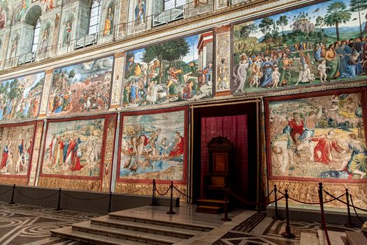Cele 12 tapiserii ale lui Rafael se întorc în Capela Sixtină, pictată de rivalul şi contemporanul său, Michelangelo Buonarroti, pentru o expoziţie de o săptămână. Tapiseriile nu au mai fost expuse în Capela Palatului papal din Vatican de 500 de ani.