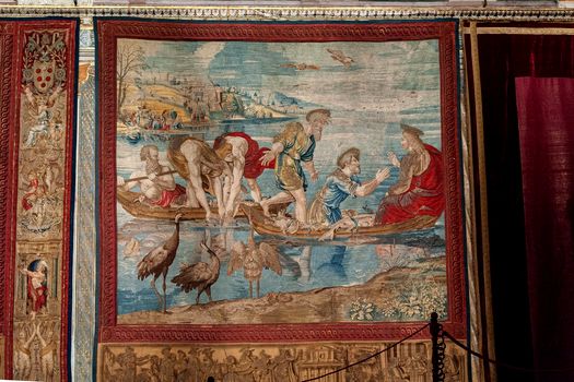 Tapiseriile sunt incluse într-o expoziţie care a debutat luni, va dura o săptămână şi care marchează 500 de ani de la moartea pictorului şi arhitectului italian Rafael Sanzio da Urbino.