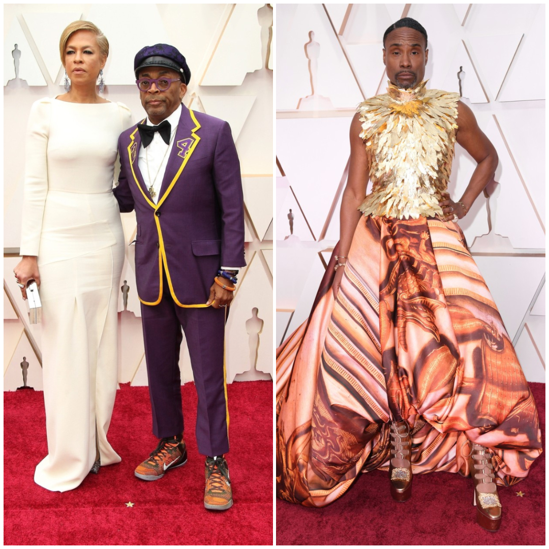 Regizorul Spike Lee a oferit o rară pată de culoare, cu un costum în nuanţe de violet şi auriu de la Gucci, prin care i-a adus un omagiu regretatului star al baschetului Kobe Bryant, purtând pe revere numărul pe care acesta îl avea pe tricou.