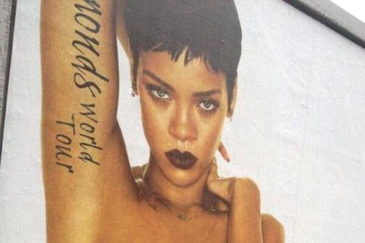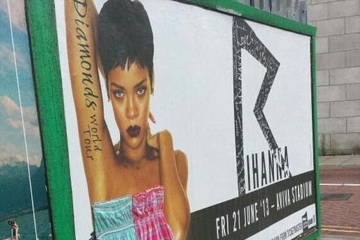 Concertul artistei a fost promovat în oraş prin mai multe panouri mari cu imaginea de pe albumul „Unapologetic”, în care aceasta apare topless, sânii fiindu-i acoperiţi de o mână şi de titlul albumului, scrie Daily Mail.