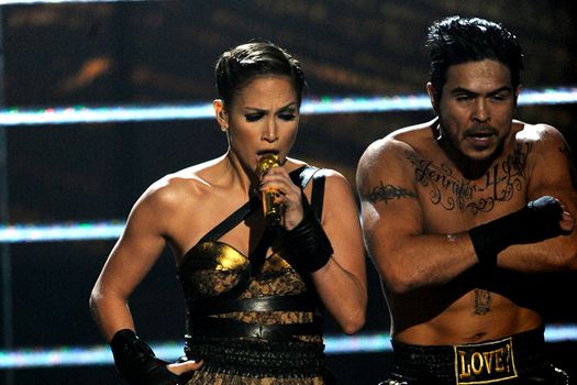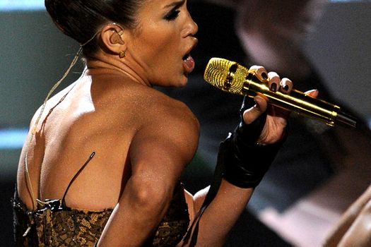 Cântăreaţa a urcat pe o scenă transformată în ring de box, purtând un halat şi mănuşi, pentru a interpreta melodia „Louboutins” de pe noul ei album „Love?” şi a început să danseze alături de dansatorii săi.