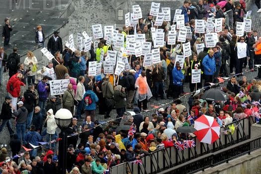 În ciuda ploii şi a temperaturilor reci, unele persoane au petrecut noaptea de sâmbătă spre duminică în corturi amenajate de-a lungul fluviului pentru a fi sigure că prind un loc în primele rânduri. Unii oameni s-au instalat chiar de sâmbătă după amiază de-a lungul Tamisei pentru a se asigura că au cele mai bune locuri de unde să urmărească parada.