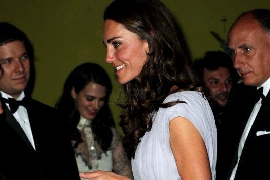 Sâmbătă noaptea, cuplul regal şi-a făcut apariţia la evenimentul BAFTA Brits to Watch, unde Catherine a purtat o rochie marca Alexander McQueen şi o pereche de cercei împrumutată de la regina Elizabeth a II-a.
