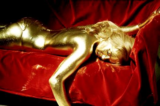 Kelly Osbourne apare aproape goală, acoperită cu vopsea aurie, într-un pictorial inspirat din filmul Goldfinger, relateză dailymail.co.uk.