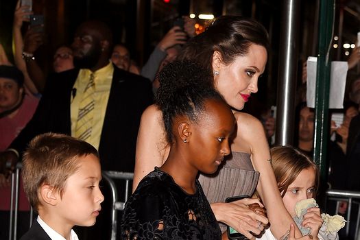 Actriţa de 42 ani a apărut la premieră cu cei şase copii, inclusiv cu fiul ei cel mare, de 16 ani, adoptat din Cambodgia, care a avut rolul de producător executiv pentru film.