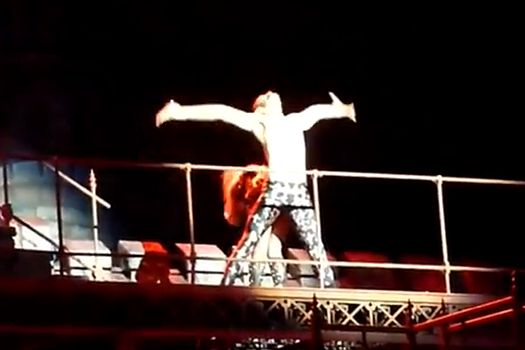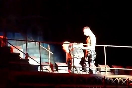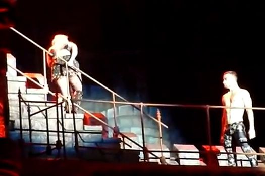 După ce a urmat modelul lui Justin Bieber, canadianul vomitând şi el pe scenă săptămâna trecută, Lady Gaga şi-a continuat coregrafia în timpul melodiei „Edge of Glory”. Totuşi, cântăreaţa nu a fost în stare să-şi ducă la capăt interpretarea fără să se mai oprească de trei ori pentru a vomita aplecată peste o balustradă din decor.