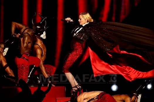 Vedeta pop s-a împiedicat în timp ce cânta pe nişte trepte de la baza scenei, aparent după ce unul dintre dansatorii săi a încercat să îi dea jos o pelerină lungă pe care o purta la începutul momentului artistic, scrie BBC News Online.