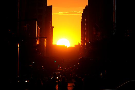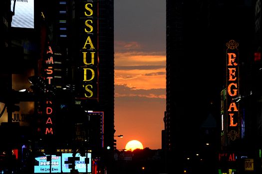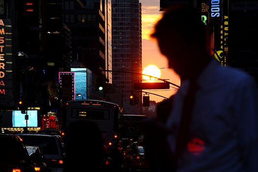 Vremea potrivită de miercuri seară, ultima dată când se întâmpla Manhattanhenge în acest an, a scos mulţi americani pe străzile din New York pentru a se bucura de fenomen.