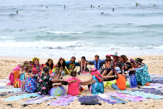 Cei doi au avut ocazia să interacţioneze pe plajă cu practicanţi de yoga – o activitate preferată a ducesei -, iar Harry a ajutat la lustruirea cu ceară a unei plăci de surf.