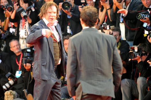 Rourke a fost fotografiat de mai multe ori pe covorul roşu, la Festivalul de Film de la Veneţia, însoţit de căţelul său chihuahua.