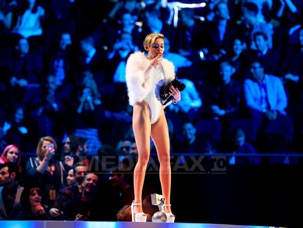 „Nu am putut să fac trofeul să-mi încapă în geantă, dar am găsit asta”, a spus Miley către public, după care a scos din poşetă o ţigară din foi, pe care a aprins-o în faţa spectatorilor.