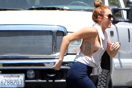 Miley a fost fotografiată din nou purtând o ţinută care îi lăsa la vedere sânii, vedeta nepărând deranjată de acest detaliu, scrie dailymail.co.uk.