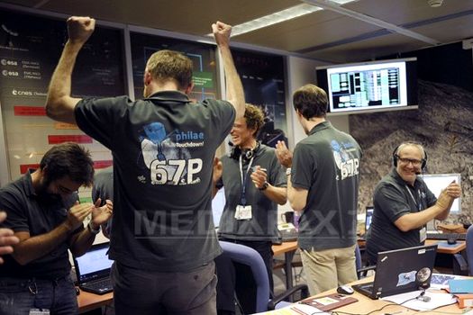 Marele succes al Agenţiei a fost primit cu şampanie, urale şi discursuri emoţionante la sediul de control al misiunii Rosetta, din Darmstadt, Germania.