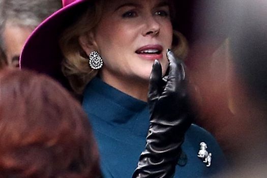 Nicole Kidman, în vârstă de 45 de ani, poate fi văzută purtând o pălărie într-o culoare aprinsă şi cu un costum extrem de elegant, întruchipând-o pe prinţesa Grace Kelly într-o scenă filmată în faţa unui magazin de bijuterii Cartier.