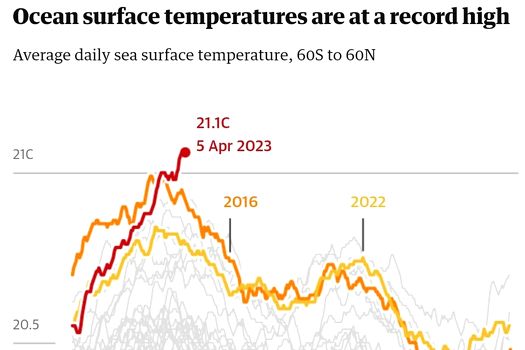 Cercetătorii în domeniul climei au declarat că datele preliminare ale Administraţiei Naţionale Oceanice şi Atmosferice (Noaa) au arătat că temperatura medie la suprafaţa oceanului a fost de 21.1C de la începutul lunii aprilie, depăşind precedentul maxim de 21C stabilit în 2016.