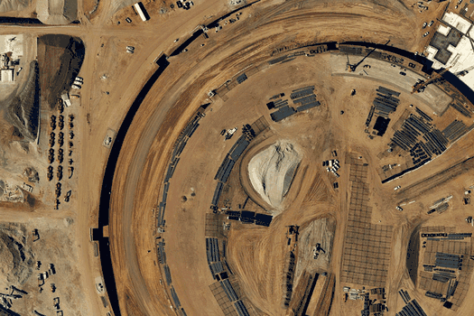 Noul campus Apple, care se întinde pe mai bine de 700.000 de metri pătraţi, este construit la aproape doi kilometri distanţă de actualul sediu central al companiei şi nu apare foarte des în fotografii, notează Mashable.