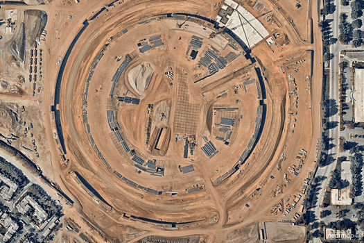 Noile imagini de înaltă rezoluţie sunt realizate de compania australiană Nearmap şi surprind dezvoltarea construcţiei, botezată „nava spaţială Apple”, în perioada August 2014 – Februarie 2015.