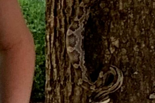 Un şarpe uriaş, încolăcit pe trunchiul copacului, se uita direct la adolescentă, scrie The Dodo.