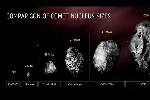 În timp ce majoritatea nucleelor cunoscute ale cometelor măsoară câţiva kilometri în diametru, astronomii care folosesc telescopul spaţial Hubble au observat cometa C/2014 UN271 cu un nucleu care atinge 85 de kilometri în diametru. Asta înseamnă mai mult de două ori lăţimea oraşului Rhode Island, potrivit CNN.