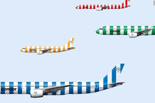 Condor are peste 50 de aeronave în flotă şi promite că majoritatea vor fi vopsite până în 2024. Aşteptaţi-vă să vedeţi şase dintre avioanele cu dungi în operare până în această vară, aceste aeronave urmând să zboare spre destinaţii precum Insulele Canare, Grecia şi Egipt.