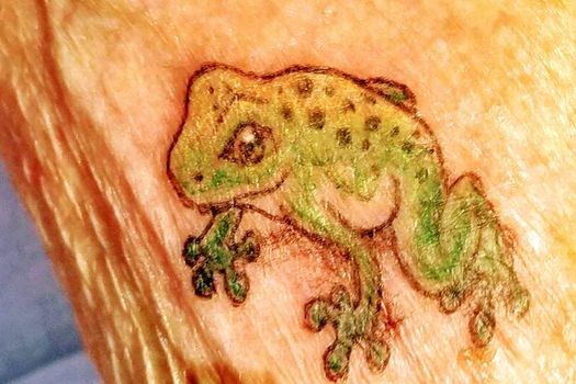 Bătrânica şi-a tatuat o mică broască verde pe antebraţul stâng pentru că reprezintă cel mai bine sentimentul de libertate pe care-l trăieşte şi mai mult decât atât, i-au plăcut dintotdeauna.