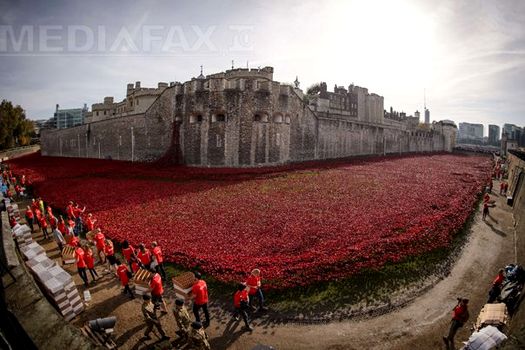 Instalaţi progresiv, începând din luna august, în şanţul de apărare al Turnului Londrei, cei 888.246 de maci care alcătuiesc marea roşie, câte unul pentru fiecare soldat căzut în luptă, au fost văzuţi de aproape patru milioane de persoane.