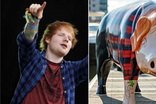 Statuia este un tribut adus artistului britanic şi a primit numele de „Ed Sheer-ham”. În traducere, „Ed Sheer-Şuncă”. Statuia fost vândută într-o licitaţie săptâmâna trecută, iar fondurile strânse în urma vânzării vor fi donate în scopuri caritabile. Totuşi, numele cumpărătorului a rămas necunoscut vreme de o săptămână.