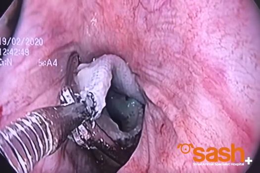 Pentru a extrage prosopul – procedură care i-a salvat viaţa lui Monty – veterinarii au folosit o serie de radiografii, pentru a localiza corpul străin, un endoscop flexibil, pentru a vedea prosopul, şi o doză sănătoasă de anestezic.