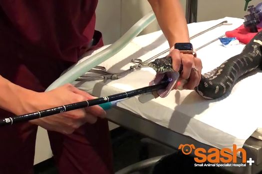 „Şarpele a mâncat prosopul voluntar şi nu a mai făcut aşa ceva până acum”, a spus un purtător de cuvânt al Small Animal Special Hospital din Sydney, clinica veterinară unde a fost tratat Monty, pentru Mashable.
