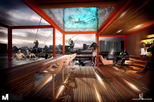 Complexul, a cărui realizare l-ar costa pe afacerist 50 de milioane de dolari, ar urma să se întindă pe 1.600 de metri pătraţi. Proiectul include trei turnuri, cu diferite utilizări, construite din containere pentru transport refolosite. Două dintre turnuri vor fi destinate cazării şi comerţului, în timp ce al treilea va fi de fapt o fermă uriaşă, a cărei producţie va fi vândută clienţilor. Omul de afaceri plănuieşte amenajarea unei plaje pe malul unui mic lac artficial, cu şezlonguri şi cabane. Clienţii vor putea să practice mai multe sporturi acvatice, cum sunt raftingul, wakeboardingul sau schiul nautic. „Vegas Extreme” va beneficia şi de zece tiroliene şi mai multe piste de off-road pentru biciclete, motociclete şi carturi, clasificate după dificultate şi supravegheate de profesionişti. Toate vehiculele vor fi însă electrice, pentru a elimina poluarea fonică şi gazele de eşapament.