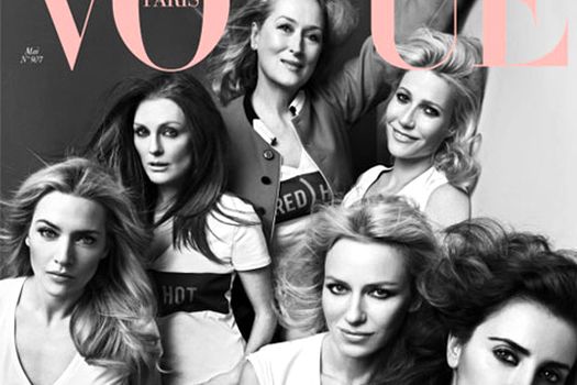 Numărul din mai al Vogue Franţa va fi disponibil cu trei variante diferite de copertă. Pe toate cele trei coperte apare şi Penelope Cruz. Pe una dintre coperte, Cruz apare alături de o altă celebră actriţă, Meryl Streep, iar pe o altă copertă apare alături de Bono, solistul trupei U2. Pe cea de-a treia, artista spaniolă apare alături de actriţele Meryl Streep, Naomi Watts, Julianne Moore şi Gwyneth Paltrow, toate purtând produse ale brandului Gap.