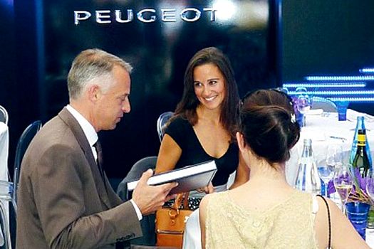 Sora lui Kate Middleton a primit din partea directorului Peugeot o carte ce ilustrează istoria de 200 de ani a companiei producătoare de maşini. Pippa, care conduce un BMW Z4, a părut încântată de cadou.
