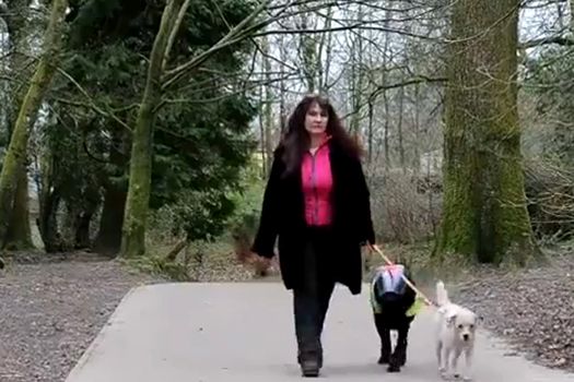 „Înainte ca Eddie să orbească, cei doi obişnuiau să alerge împreună după jucării, dar acum Eddie se bazează pe Milo ca să îl ajute să se joace şi cei doi adoră să meargă în pădure”, povesteşte Angie, în vârstă de 45 de ani.